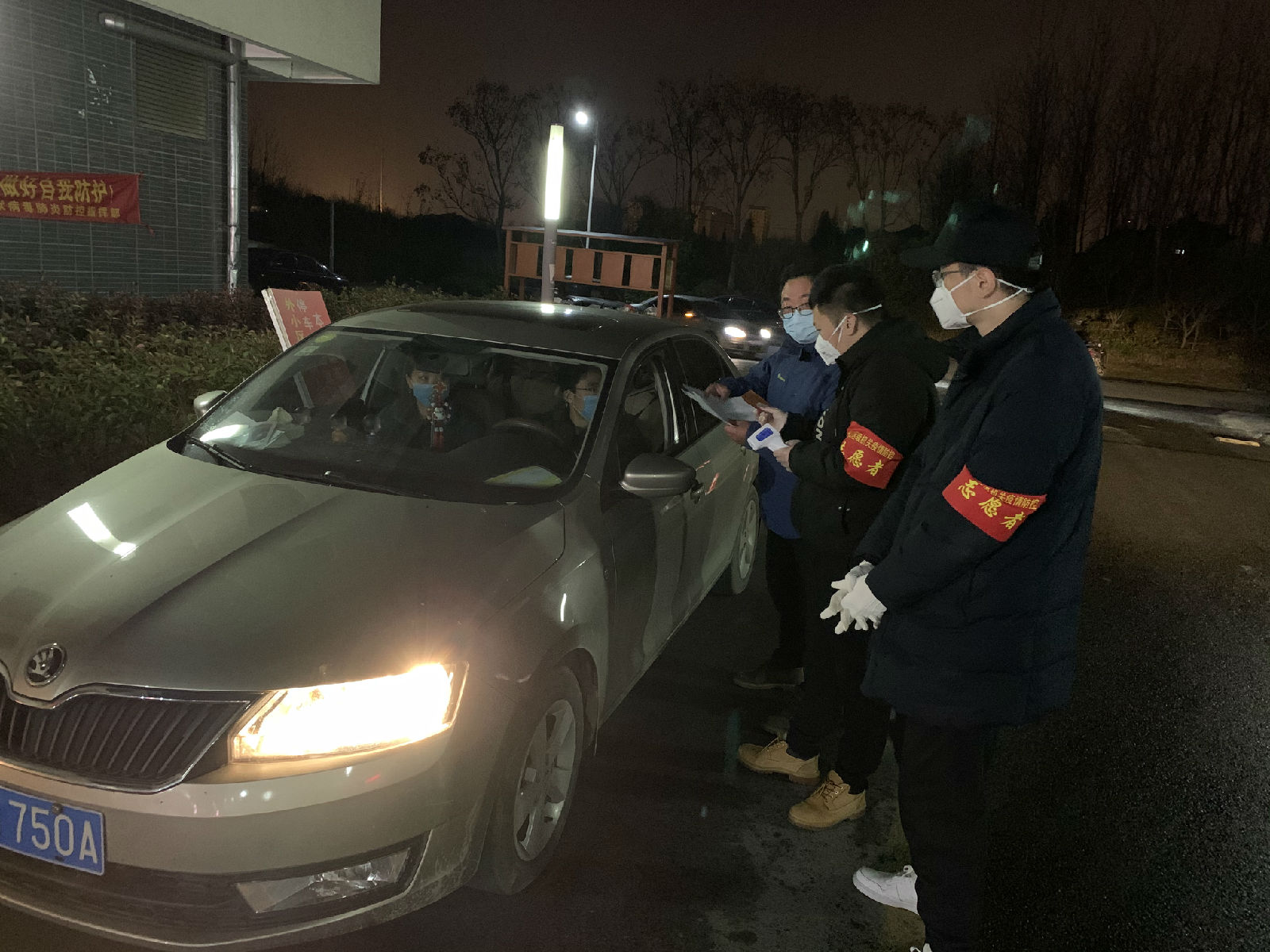 (對(duì)出入小區(qū)的車輛進(jìn)行人員體溫監(jiān)測(cè)和信息核實(shí)) |