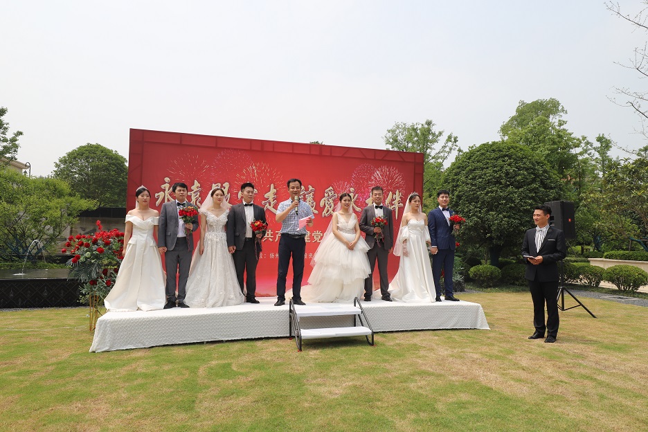 系列活動三:“永遠跟黨走 讓愛永相伴”集體婚禮 7月1日上午,在中國共產黨成立99周年的大喜日子,公司黨支部組織公司黨員干部職工為公司四對新人舉辦了一場別開生面的集體婚禮。 婚禮現(xiàn)場,公司黨支部副書記、總經理趙建理受維揚發(fā)投黨支部、董事會的委托,代表維揚發(fā)投全體同仁為幾對新人送上最美好的祝愿的同時,也向幾位新人提了兩點希望: 一是希望幾對新人在今后的的生活中傳承良好家風,互敬互愛、和睦相處,孝敬雙方父母,做一個好丈夫、好妻子、好女婿、好兒媳。二是希望幾對新人在今后的工作中互相支持、互相鼓勵、積極工作,成為事業(yè)有為的好青年,為中國特色社會主義偉大事業(yè)不懈奮斗。 舉辦集體婚禮是新時代移風易俗、婚事新辦的好形式,也是維揚發(fā)投始終堅持“文化塑企”的理念體現(xiàn),維揚發(fā)投將始終堅持“以人為本”,一以貫之關心職工、服務職工。